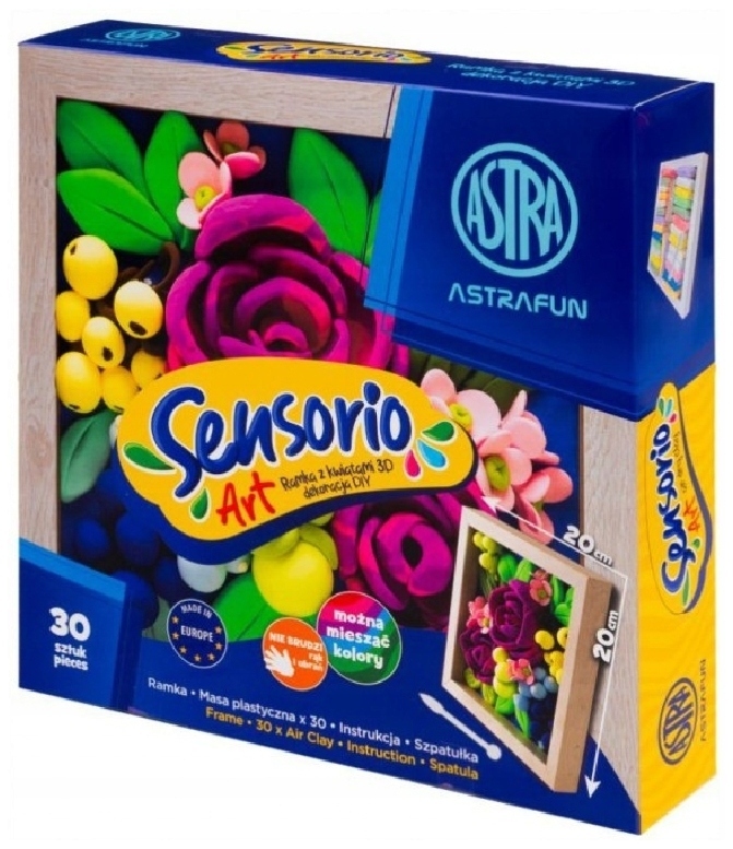 Zestaw Mas Plastycznych Sensorio Art z Ramką ASTRA FUN - 30 KolorówOtwórz drzwi do świata kreatywności z zestawem Sensorio Art! Ten wyjątkowy zestaw zawiera wszystko, czego potrzebujesz, aby stworzyć niepowtarzalne dzieło sztuki 3D z masy plastycznej:•Ramka 20x20 cm – idealna do zaprezentowania...