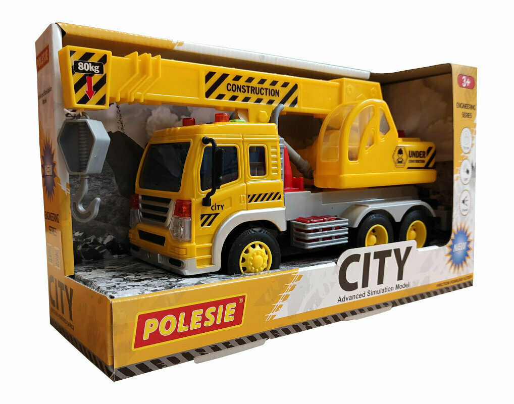 Polesie 86532 City samochód - dźwig, inercyjny żółty (ze światłem i dźwiękiem) w pudełku