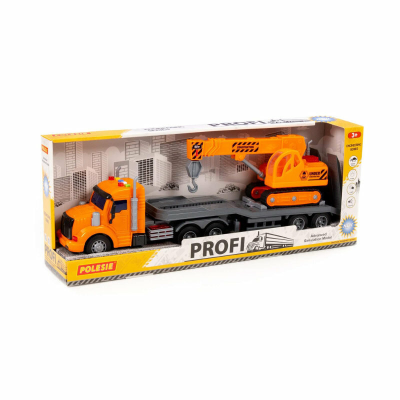 Polesie 84009 Profi samochód-holownik inercyjny ze światłem i dźwiękiem + dźwig gąsienicowy w pudełku