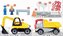 - Zestaw budowlany zawiera: wywrotkę, koparkę, 17 elementów oznakowania drogowego, barierę drogową i 3 figurki.
