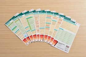 dziesięcioczęściowy przydatny pomocnik w nauce matematyki, wydrukowany na grubszym, laminowanym papierze w praktycznym formacie dwustronnych zakładek.