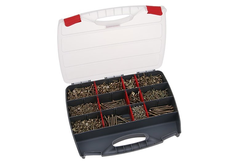 Kompletny zestaw wkrętów w praktycznym organizerze