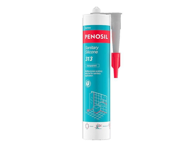 Sanitární silikon 313c PENOSIL je acetoxydový víceúčelový sanitární silikonový tmel pro vodotěsné těsnění v mokrých a vlhkých prostorách.