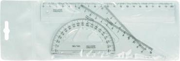 Zestaw kreślarski mały zawiera:- linijkę 20 cm,- kątomierz 180o- ekierkę 13 cm- ekierkę równoramienną 9 cm .Wykonany z przezroczystego tworzywa sztucznego,skale naniesione w procesie tłoczenia oraz linijka iekierki posiadają podcięcia do rysunku tuszem. przeczytaj całość