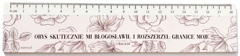 Linijki z fragmentem ze Słowa Bożego dodadzą otuchy lub radości każdym czekającym na nas pomiarom.Linijka przyda się:w dziecięcym piórniku,na sprawdzianie z matematyki,w szufladzie pani domu,przy codziennych wyzwaniach studenta,w precyzyjnych pomiarach każdego czujnego okaPodziałka - 18...