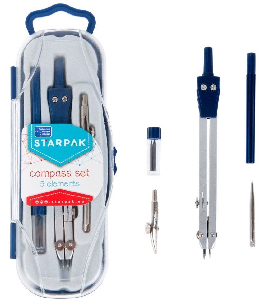 Cyrkiel metalowy + zestaw kreślarski 5el.