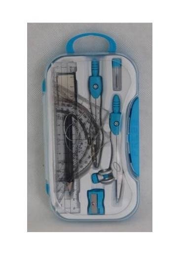 Zestaw składający się z dwóch cyrkli: metalowego z grafitem 2 mm oraz z ołówkiem, kompletu geometrycznego, temprówki i pojemnika na zapasowe grafity. Całość w kolorowym etui z zawieszką. przeczytaj całość