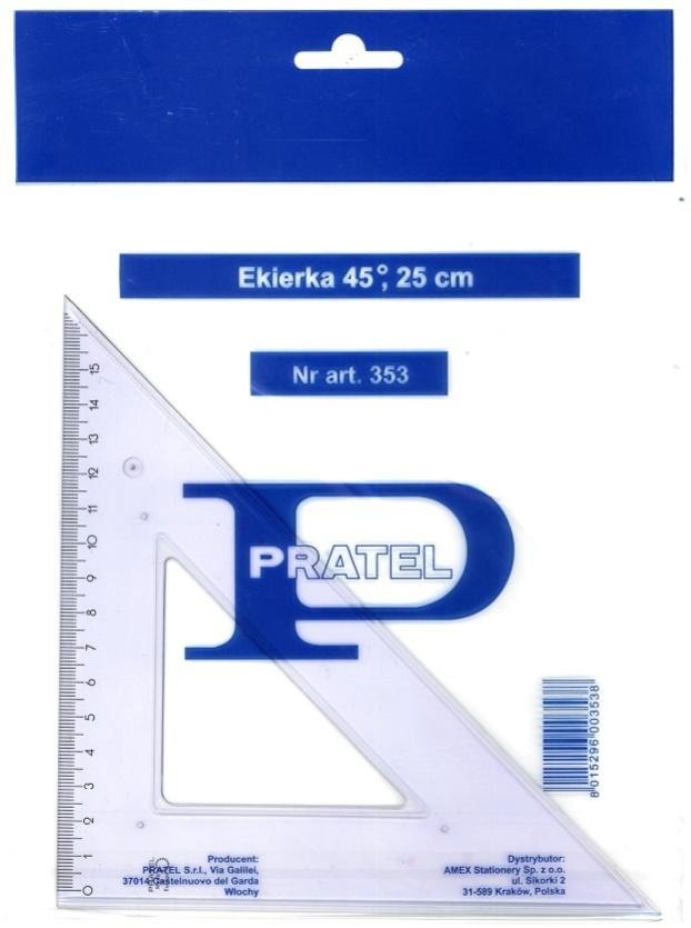 Ekierka 25cm, 45 stopni - 1 sztuka w etui. przeczytaj całość