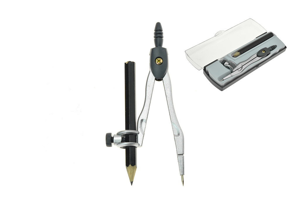 Kovové kružítko pro použití tužky nebo pera. Jednoduchý mechanizmus pro upevnění tužky. Kružítko je dodáváno v plastové krabičce pospolu s tužkou. przeczytaj całość