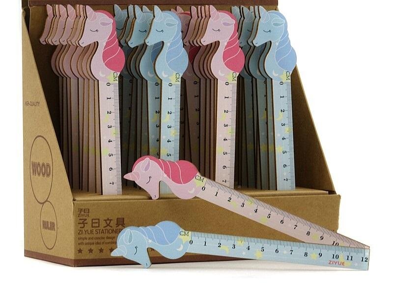 linijka drewniana jednorożec dł.12cm, display 36szt; 20x19x10cm, Box przeczytaj całość