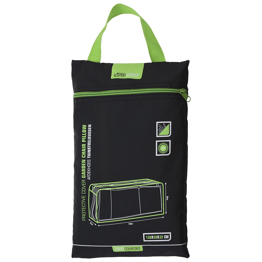 4001 Obal ProGarden na polstry 130 x 50 x 32 cm, černýKvalitní černý obal na polstry z pevné polyesterové tkaniny ochrání Vaše zahradní vybavení před povětrnostními vlivy.Černý voděodolný obal na zahradní polstry nebo jiný zahradní nábytek.Délka - 130 cm, šířka - 32 cm, výška - 50 cm.UV odolná...