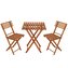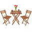 Elegantní set dřevěného nábytku stůl a dvě židle, ideální pro menší prostory a balkony. Vyrobeno z pevného bukového dřeva s ochrannou světle hnědou lazurou, která zajišťuje vysokou odolnost vůči povětrnostním vlivům. Díky praktickému skládacímu provedení se snadno přenáší a uskladňuje. Vhodné pro venkovní použití. Nosnost židle 125 kg, stůl 30 kg.