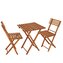 Elegantní set dřevěného nábytku stůl a dvě židle, ideální pro menší prostory a balkony. Vyrobeno z pevného bukového dřeva s ochrannou světle hnědou lazurou, která zajišťuje vysokou odolnost vůči povětrnostním vlivům. Díky praktickému skládacímu provedení se snadno přenáší a uskladňuje. Vhodné pro...