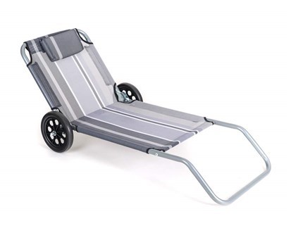 Plážové lehátko s nastavitelným sklonem opěrky a praktickými kolečky pro snadnou přepravu. Vhodným nastavením úhlu opěrky, je možno při přepravě použít lehátko zároveň jako vozík, pro přepravu dalších potřeb, jako chladící box, deka, zavazadla atd. Opěrka je doplněna praktickým podhlavníkem pro... przeczytaj całość