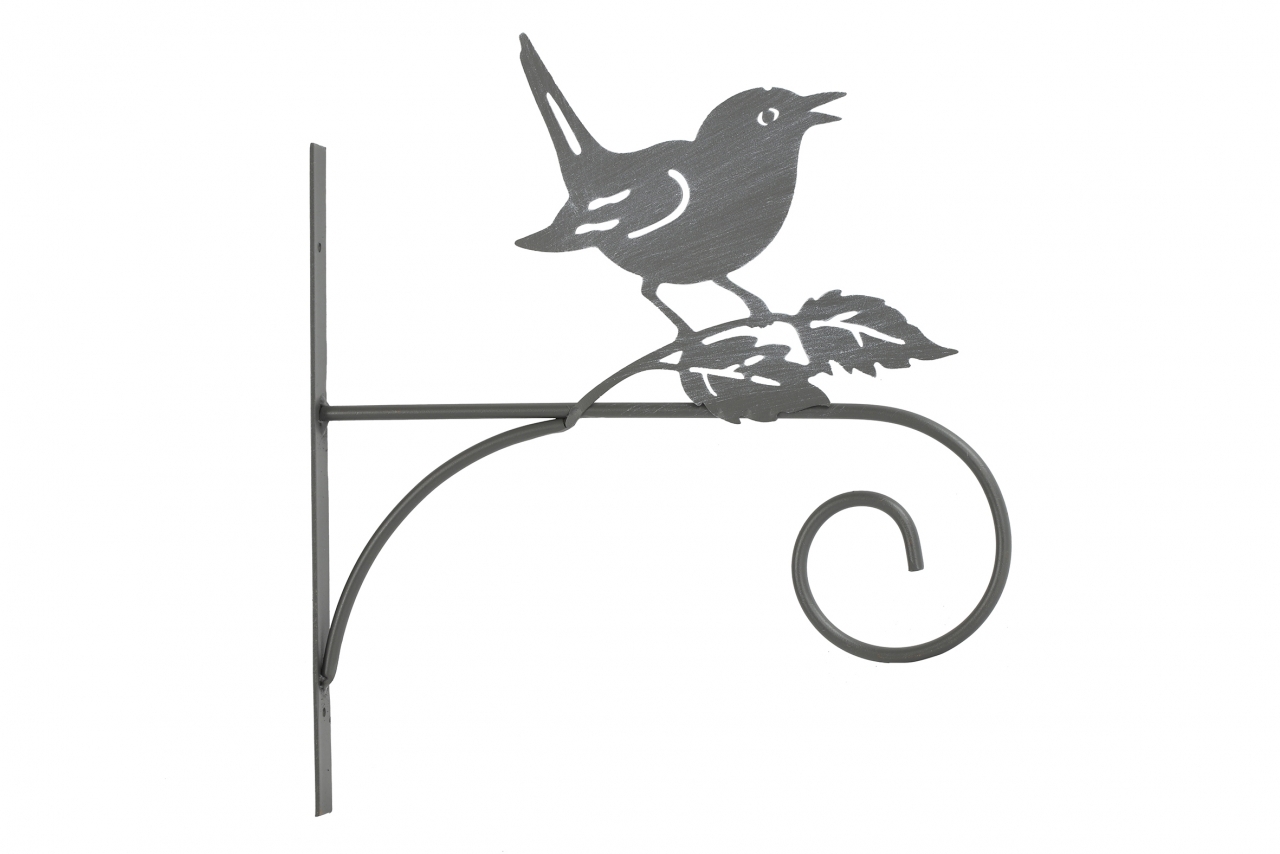 Kovový držák Chip šedý s ptáčkem na závěsný květináč 31x27,5x1,5 cm