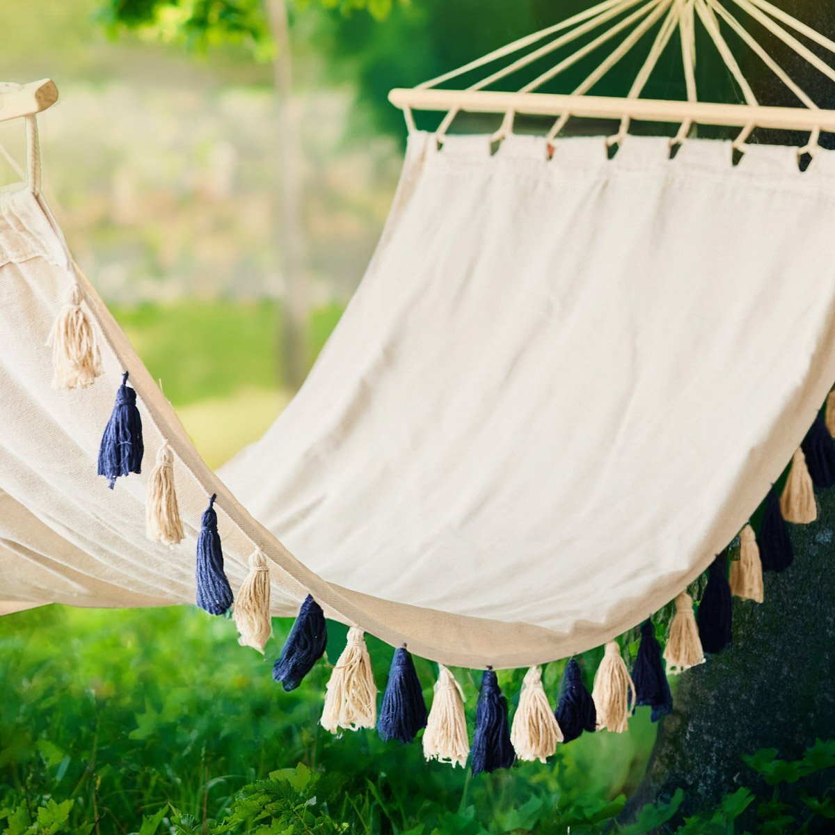 Houpací síť | MAVRIC | se střapci z džínoviny v barvě ecru | 100x200 cm | 890135 Homla