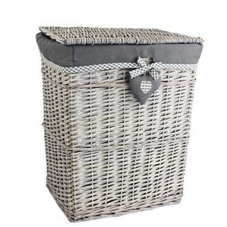 Velice pěkný koš na prádlo moderního designu. Rozměry : 45 x 34 cm, výška 56 cm. Barva : šedá. Materiál : proutí, látka. przeczytaj całość
