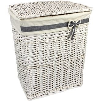 Velice pěkný koš na prádlo moderního designu. Rozměry : 45 x 34 cm, výška 56 cm. Barva : bílá. Materiál : proutí, látka. przeczytaj całość