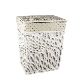 Velice pěkný koš na prádlo moderního designu. Koš má rozměry 46 x 35 cm, výšku 57 cm. Barva : bílá. Materiál : proutí, látka. przeczytaj całość