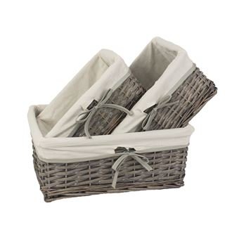 Sada zásuvek.Sada obsahuje tři zásuvky o třech velikostech.Malá zásuvka má rozměry : 28 x 19,5 cm, výška 12 cm.Střední zásuvka má rozměry : 33 x 24 cm, výška 14 cm.Velká zásuvka má rozměry : 40,5 x 29 cm, výška 16,5 cm.Barva : šedá.Materiál : proutí, látka. przeczytaj całość