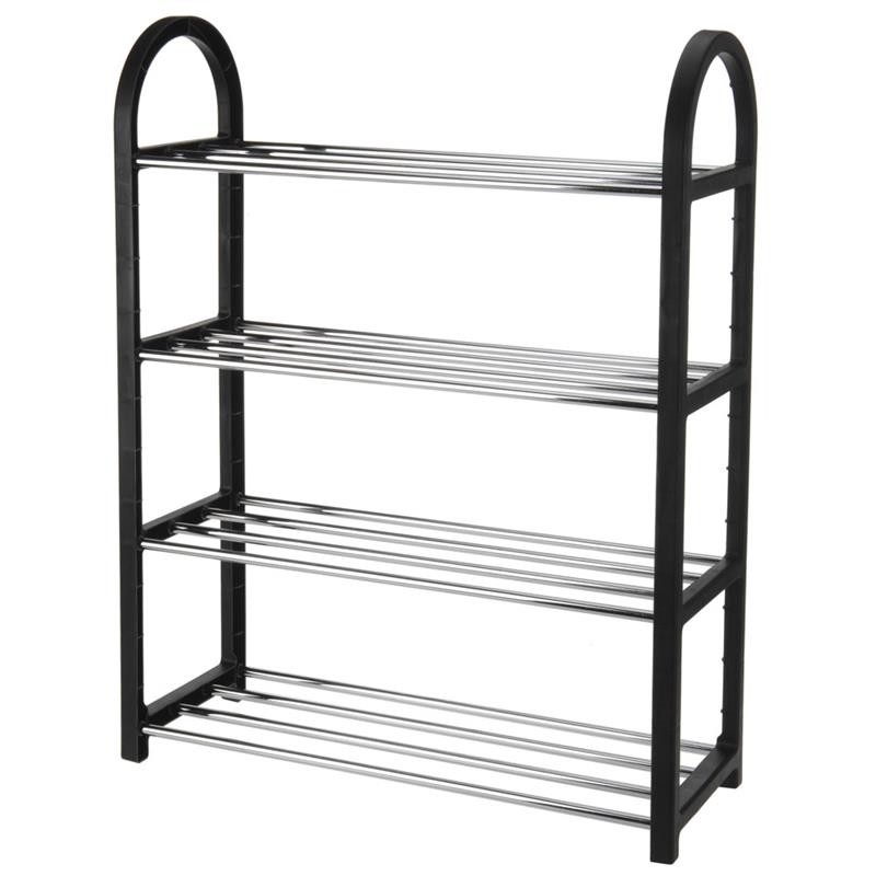 Półka na buty to praktyczny pomocnik do przechowywania obuwia. Chromowane rury i plastikowe boczki w kolorze czarnym. Półkę na buty można również bardzo dobrze wykorzystać do wyposażenia wnętrza szaf lub garderób. Wymiary 65 x 50 x 19 cm. Odległość między półkami 15,5 cm. EAN 8711295238314 przeczytaj całość