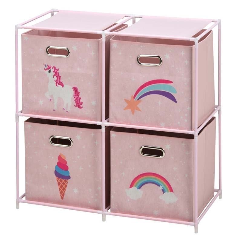zásuvková skříňka se 4 přihrádkami, kovový rám s netkanou textilií 80gsm, růžové barevné police, rozměry: 68x35xh70cm, tloušťka trubky: 95mm, růžová barva rámu, se 4 dětskými dívčími vzory netkaných úložných boxů a kovovou rukojetí. przeczytaj całość