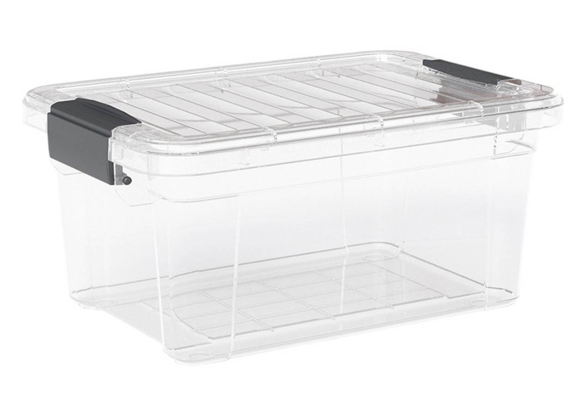 Uniwersalny plastikowy pojemnik z pokrywą zamykaną dwoma solidnymi zatrzaskami jest praktycznym rozwiązaniem do przechowywania różnego rodzaju przedmiotów.