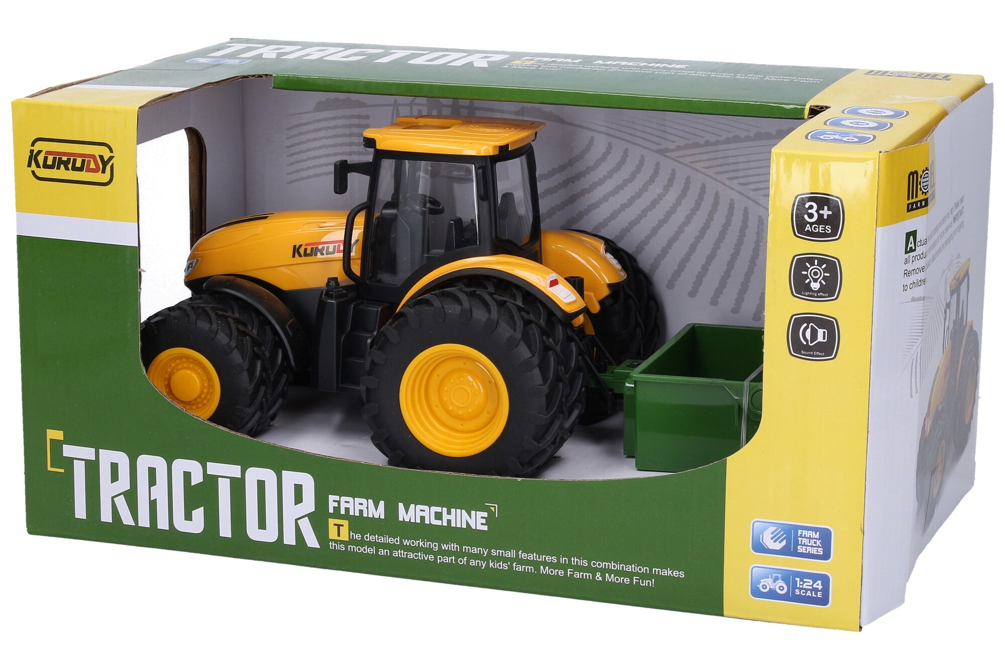 Traktor z akcesoriami. Wymiary 27,5x10,5x12 cm. Podwójne koła. Na napęd sprężynowy. Efekty świetlne i dźwiękowe. 3x baterie AG13 w zestawie. przeczytaj całość