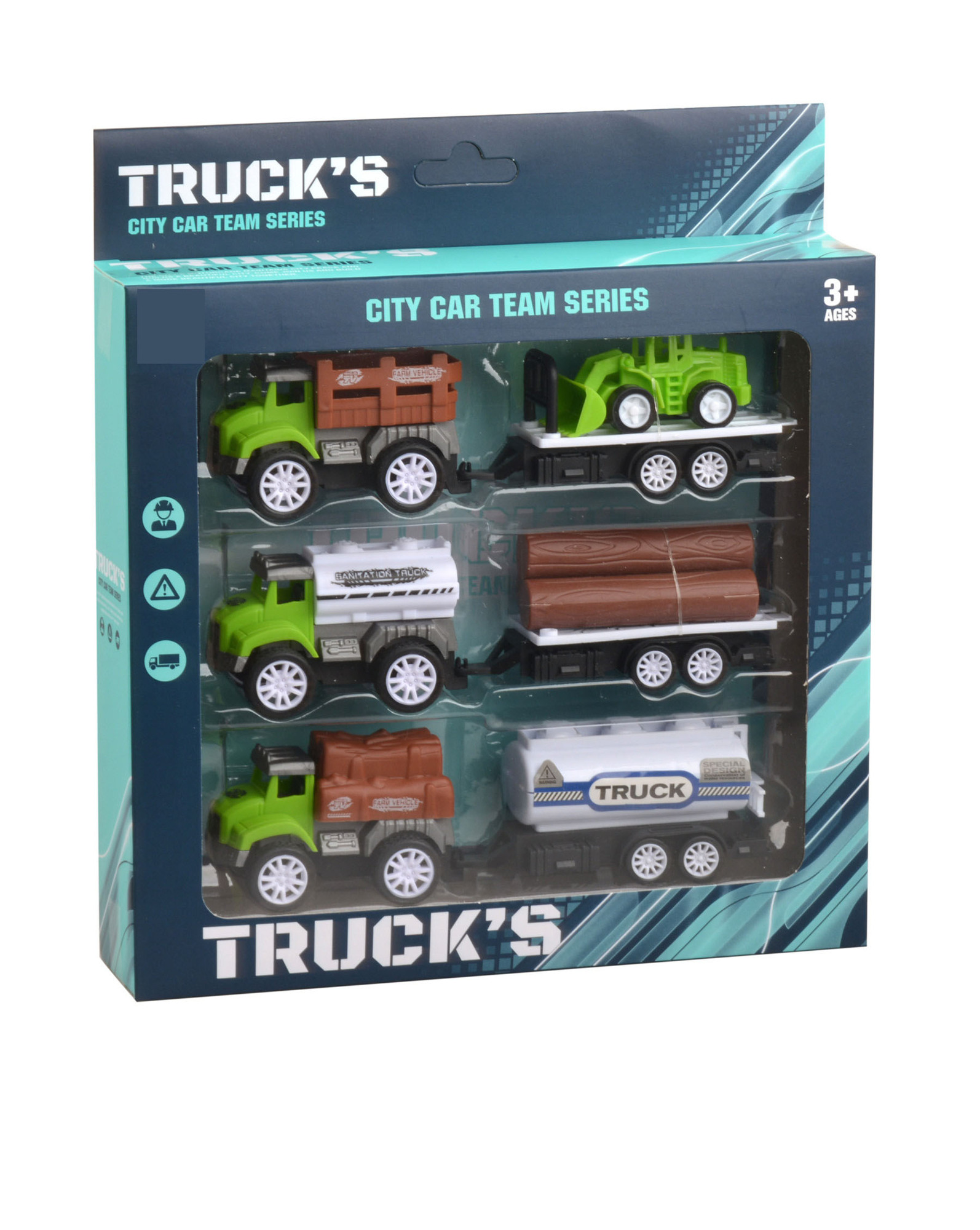 Samochody z przyczepą 3 szt. Wymiary 18x4x4 cm. Z napędem na naciąg. przeczytaj całość