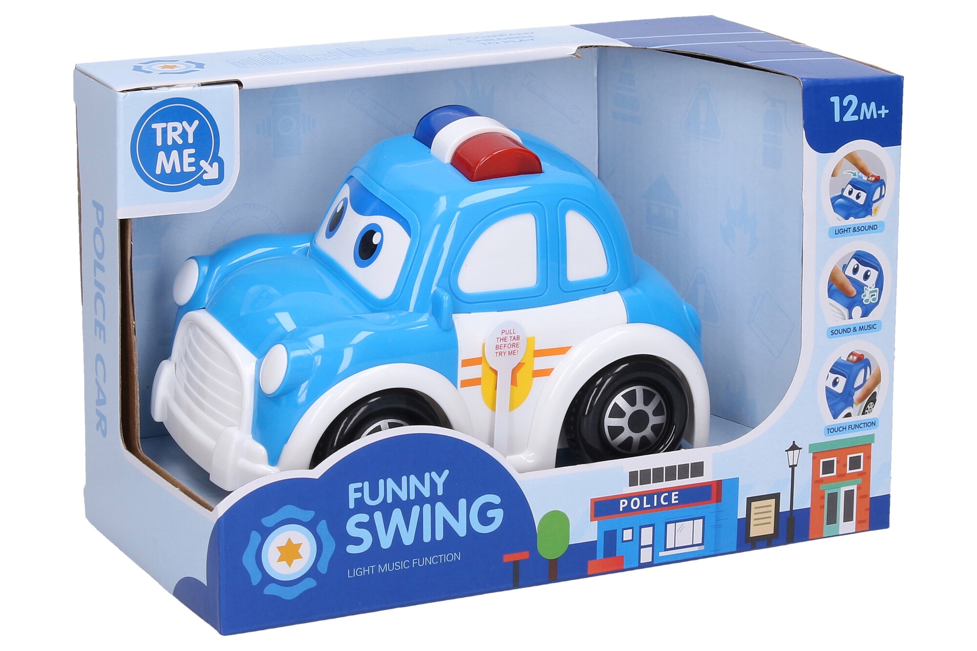 Samochód policyjny z efektami. Wymiary: 15 cm. Efekty świetlne i dźwiękowe. Obracające się kółka. 2x AAA baterie w zestawie. przeczytaj całość