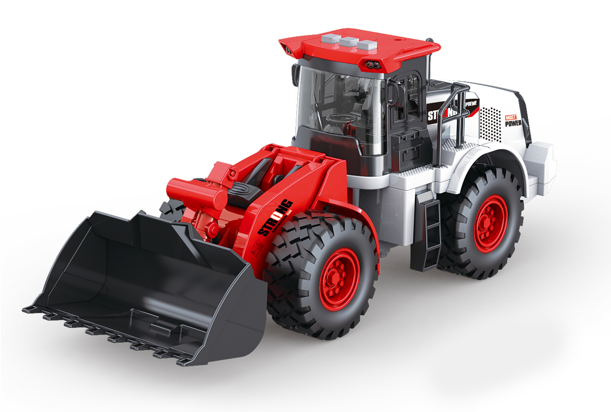 Nakladač s efekty na setrvačník. Velikost 30 cm. Vydává světelné a zvukové efekty. Aktivace tlačítky na střeše. Zvuky couvání, troubení, startování motoru, pohyby nakladače. 3xAG13 baterie, součástí balení. przeczytaj całość