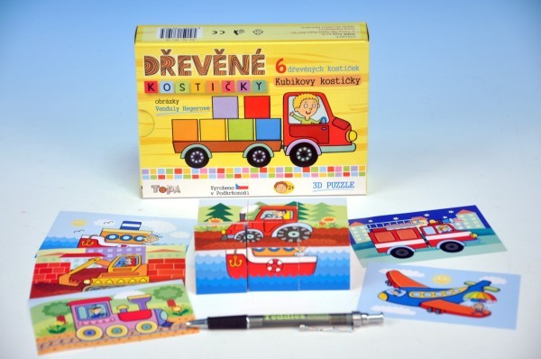Kostky kubus Kubíkovy kostičky Dopravní prostředky dřevo 6ks v krabičce 18x13cm 24m+