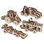 Ugears 3D drewniane mechaniczne puzzle U-fidget pojazdy Unikalny zestaw 4 indywidualnych miniaturowych modeli. Zestaw zawiera samochód sportowy, ciągnik siodłowy, ciężarówkę i tramwaj, wszystkie z podstawowymi elementami mechaniki. Każdy model ma oczko do zawieszenia. - materiał: sklejka - odpowiednie dla wieku 6+ - zawiera szczegółową ilustrowaną instrukcję Drewno i ruch - jak to ze sobą współgra? To proste! Ruch mechaniczny i tradycyjny materiał łączą się w 3D modelach UGEARS. Poznaj tajniki przekładni, napędów na gumkę, kół i innych elementów mechanicznych! Zabawne składanie bez konieczności klejenia, dopracowane detale, płynne działanie i wysoka jakość wykonania - w pełni funkcjonalne, ruchome 3D puzzle UGEARS zachwycą nawet tych, którzy nie przepadali za fizyką w szkole. Szczegółowo wykonane drewniane 3D układanki ukraińskiej marki UGEARS są odpowiednie nie tylko do rozwijania motoryki i wyobraźni, ale także są niezwykle zabawne. Dzięki wysokiej jakości wykonania modele po złożeniu są przy odpowiedniej konserwacji w pełni funkcjonalne i ruchome, co pozwala lepiej poznać tajniki mechaniki. UWAGA: Dla prawidłowego działania i bezproblemowej eksploatacji należy nasmarować elementy, przy których jest to wskazane w instrukcji (w szczególności osie), woskiem ze zwykłej świecy, aby obrót odbywał się przy minimalnym tarciu.