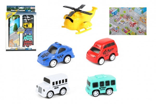 Dopravní prostředky mini 5 ks plast s mapou 43x57cm na zpětné natažení v krabičce 18x28x4cm