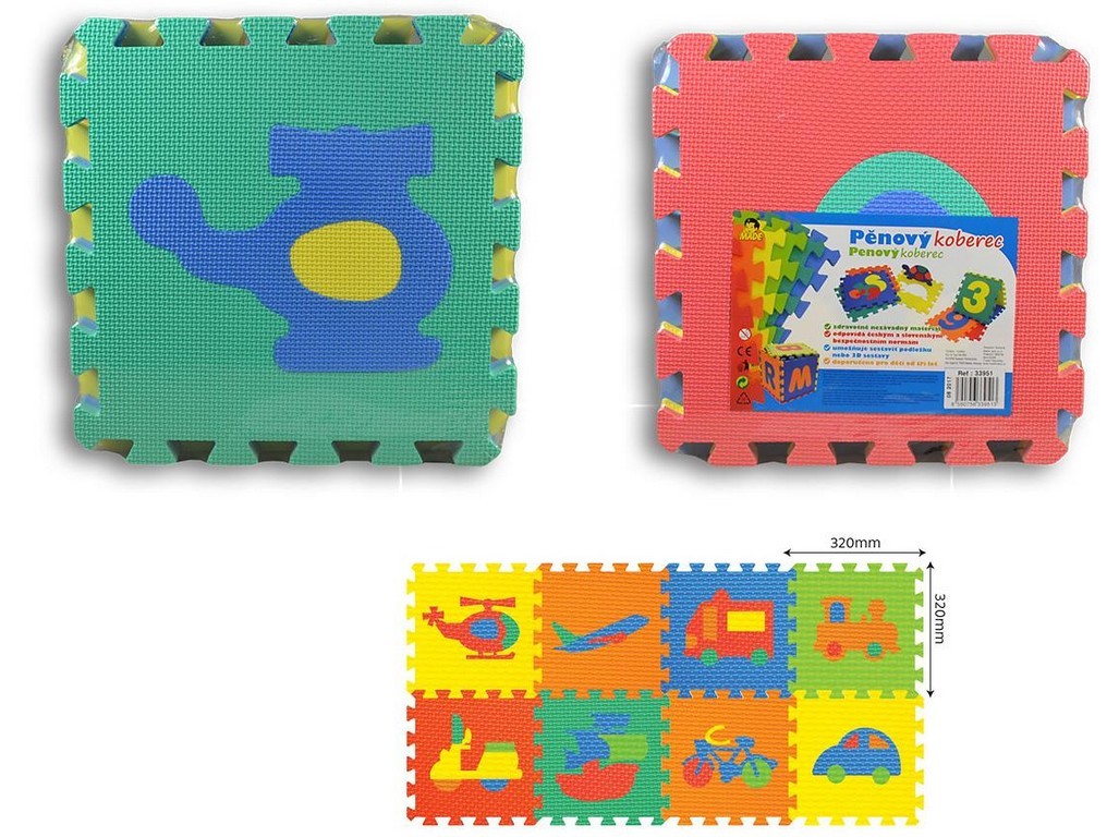 Pěnové puzzle s dopravními prostředky.Puzzle obsahuje 8 velkých dílů, ze kterých lze vyjmout jednotlivé prostředky.Rozměr 1 dílu: 32x32x1 cm.Seskládáním jednotlivých dílů vznikají zajímavé obrazce, které tvoří barevnou podlahu.Vzhledem k tepelně-izolačním vlastnostem se nemusíte bát, že by dítě...