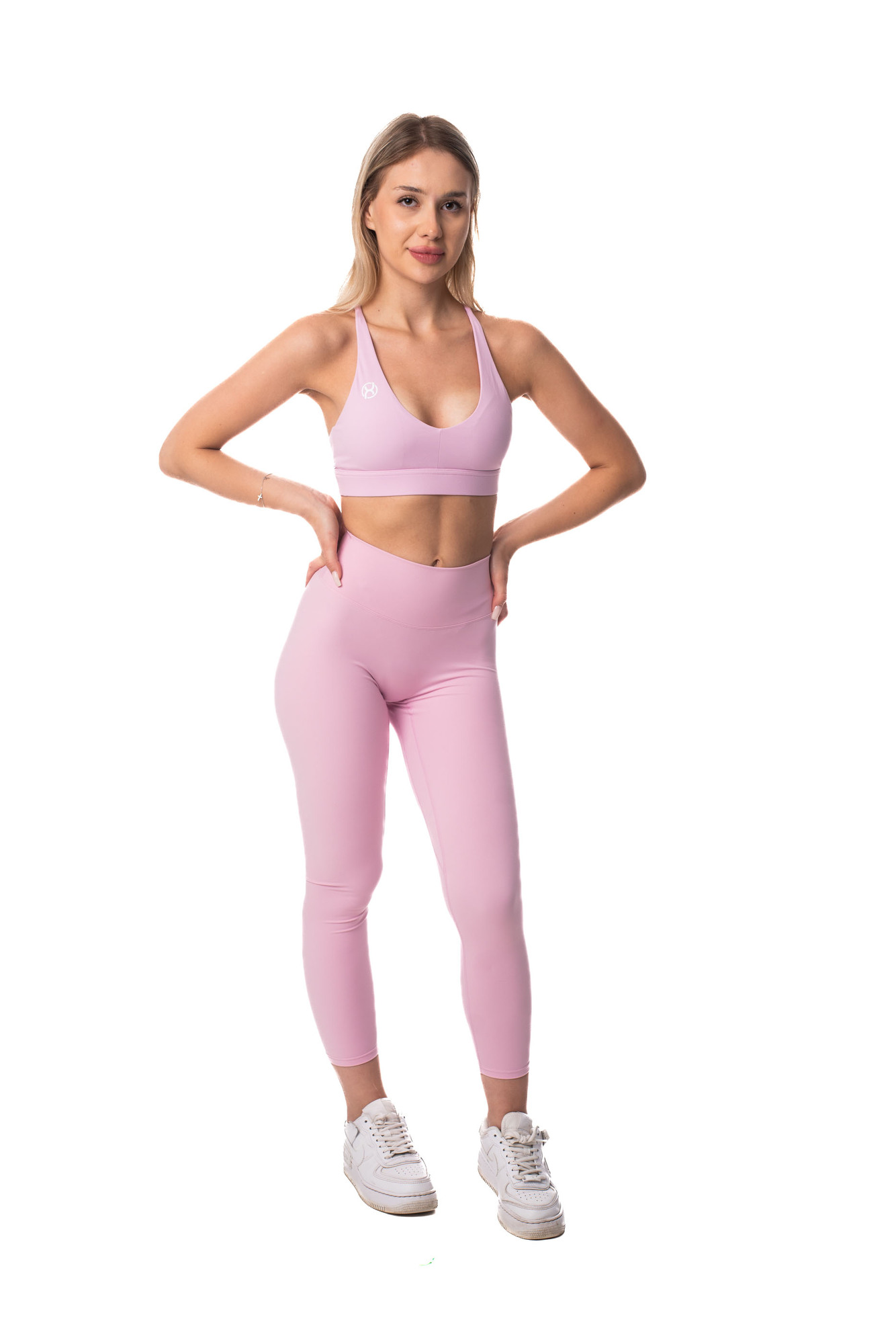 BrainMax dámské sportovní legíny dlouhé s řasením, růžové