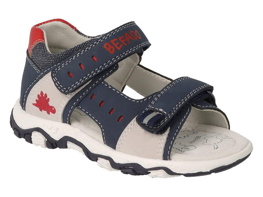 Skvěle padnoucí dětské sandálky Befado DINO - jaké jsou jejich přednosti?Sandály se vyznačují koženou, hygienickou podšívkou s antialergickými vlastnostmi, zvyšující komfort používání. Svršek je vyroben z kvalitní, pružné, měkké a snadno udržovatelné imitace kůže. Funkční zapínání na suchý zip...