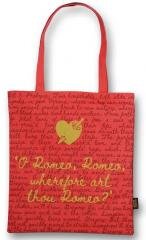 Oto stylowa torba "Romeo i Julia" od Half Moon Bay - elegancka, ekologiczna propozycja dla miłośników Szekspira i romantyzmu.Na intensywnie czerwonym tle torby znajduje się złoty cytat: "A rose by any other name would smell as sweet" - znane i uwielbiane słowa z "Romea i Julii" Williama...