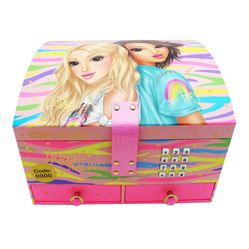 Kvalitně zpracovaná dívčí šperkovnice značky Top Model vyrobená z pevného kartonu se zrcátkem a elektronickým zámkem. Při otevření tajným kódem hraje melodii.Šperkovnice nabízí velký vnitřní prostor pro přehledné uložení všech šperků! Horní patro je rozděleno odnímatelnou přihrádkou pro uložení...