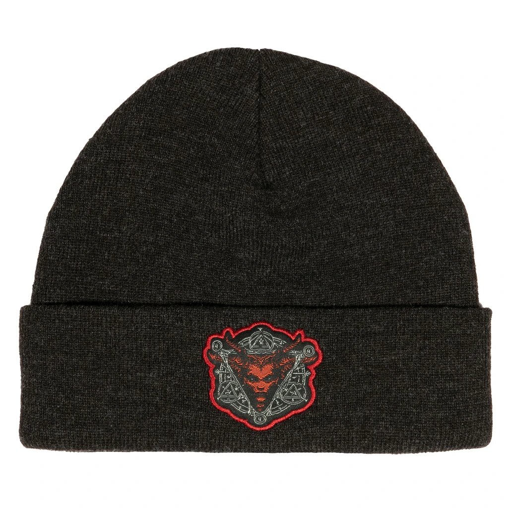 Tmavě šedá zimní čepice s Lillith, královnou Succub, a s logem herní pecky Diablo IV. Univerzální čepice sedne na každou hlavu - zahřeje pařmena i pařmenku. przeczytaj całość