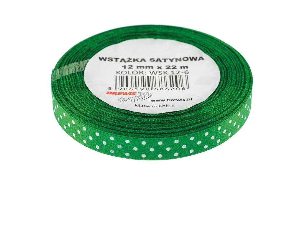Wstążka satynowa w kropki ciemna zielona 12mmx22m przeczytaj całość
