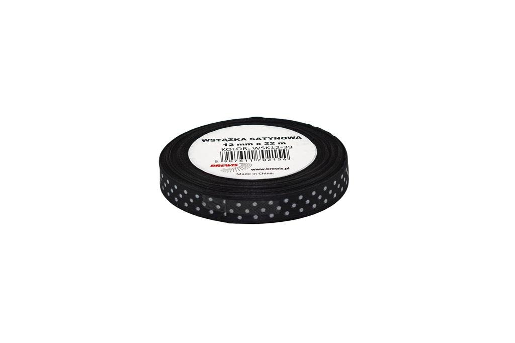 Wstążka satynowa w kropki czarna 12mmx22m przeczytaj całość