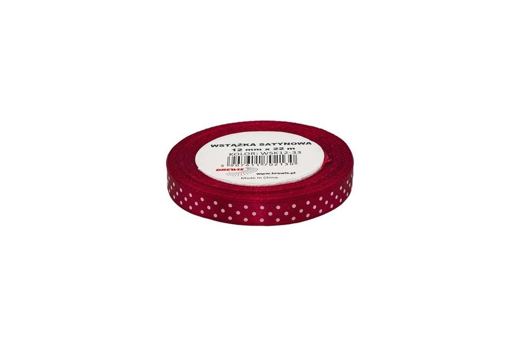 Wstążka satynowa w kropki bordowa 12mmx22m