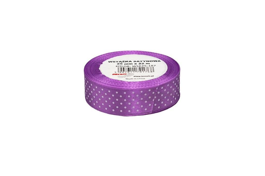 Wstążka satynowa w kropki jasna fioletowa 25mmx22m