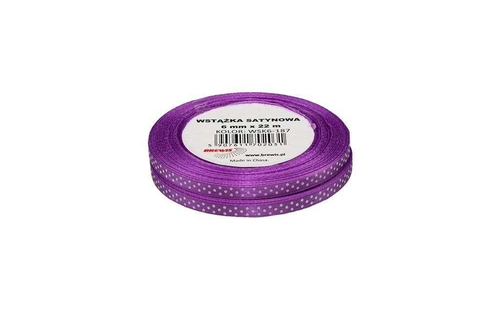 Wstążka satynowa w kropki lawendowa 6mmx22m 2szt
