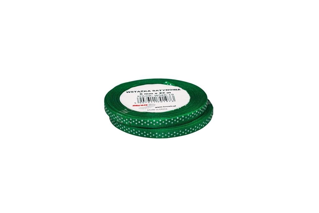 Wstążka satynowa w kropki zielona 6mmx22m 2szt