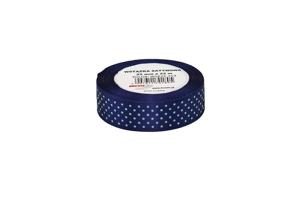 Wstążka satynowa w kropki granatowa 25mmx22m