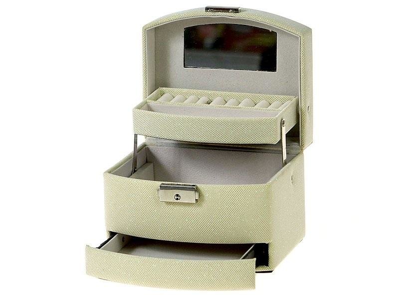 kuferek, szkatułka na biżuterię, automatycznie wysuwane szufladki, z lusterkiem; 15x12x11cm, Box przeczytaj całość