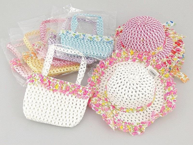 Mix wzorów, produkt wysyłany losowo, cena za 1 sztukę.Kapelusz dziewczęcy letni, z torebką;29x13cm kapelusz; 27x22cm torebka; przeczytaj całość