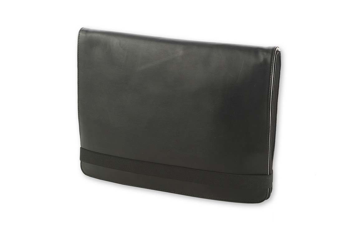 Pouzdro na notebook z polyuretanu , doplněné pružným materiálem po stranách. Inspirované designem zápisníků Moleskine, včetně pružné pásky. Uvnitř kontrastní béžová podšívka. Vhodné pro tablety velikosti 15. Rozměry 36,5 x 26,5 x 4 cm. przeczytaj całość